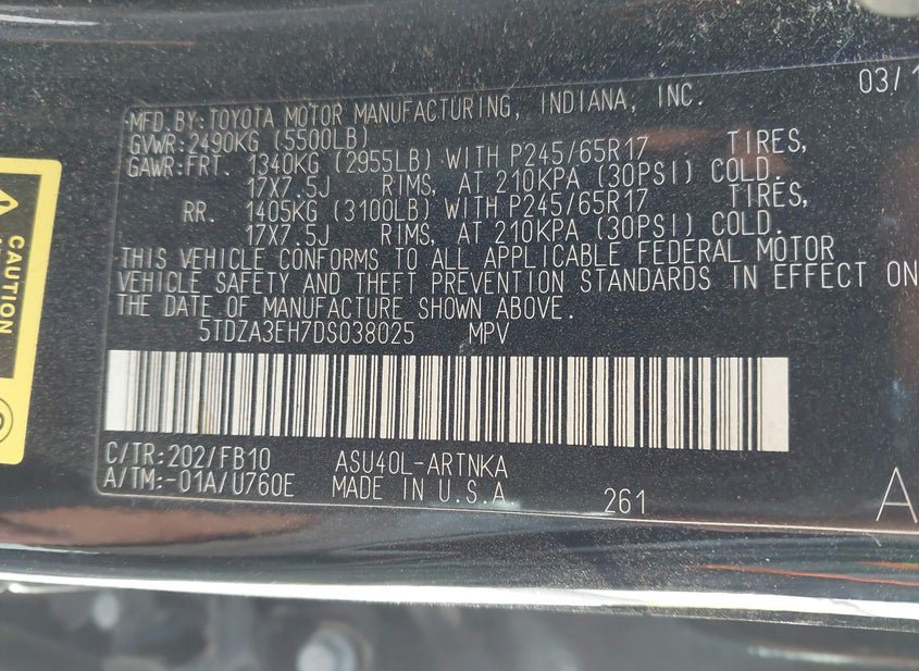 - VIN: 5TDZA3EH7DS038025
