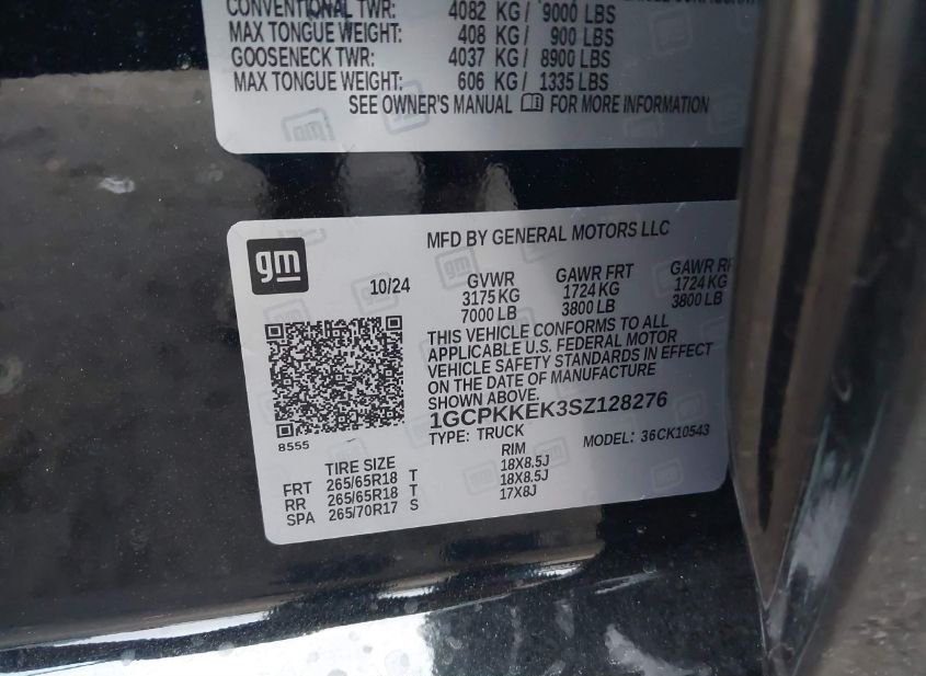 - VIN: 1GCPKKEK3SZ128276