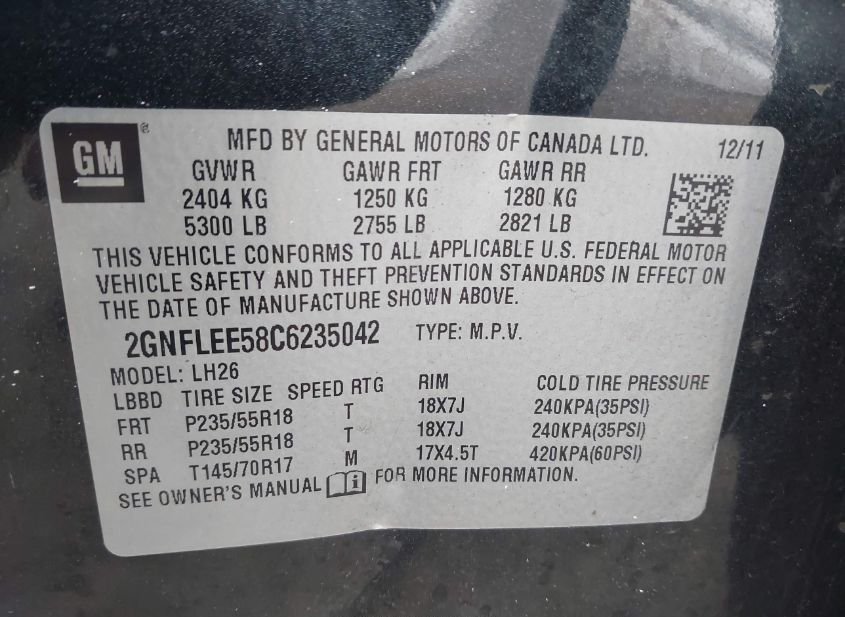 - VIN: 2GNFLEE58C6235042