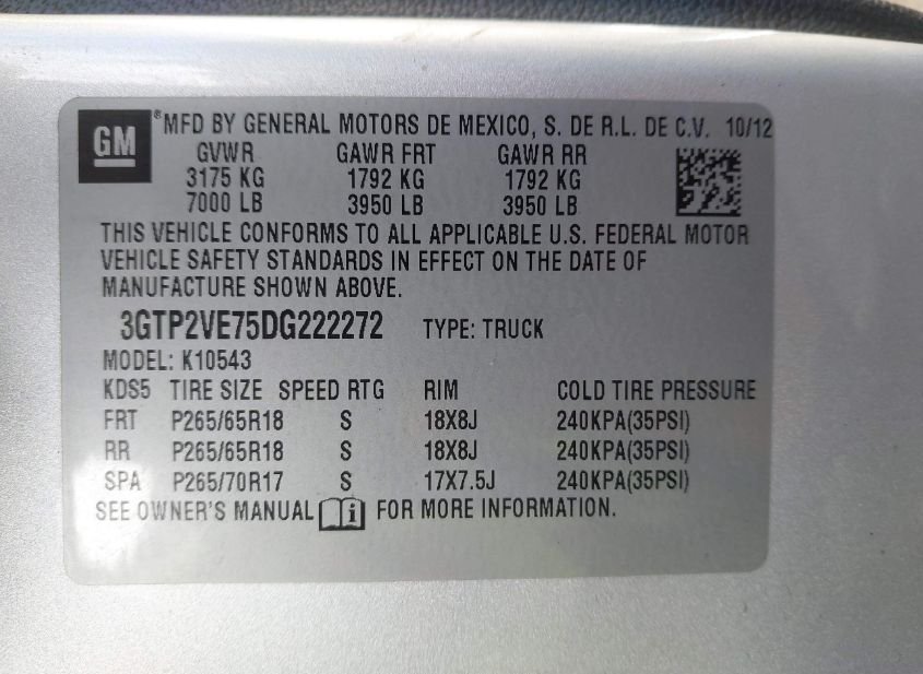 - VIN: 3GTP2VE75DG222272