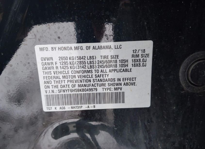 - VIN: 5FNYF6H59KB049979