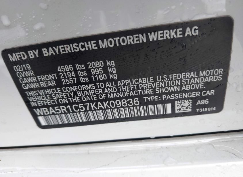 - VIN: WBA5R1C57KAK09836