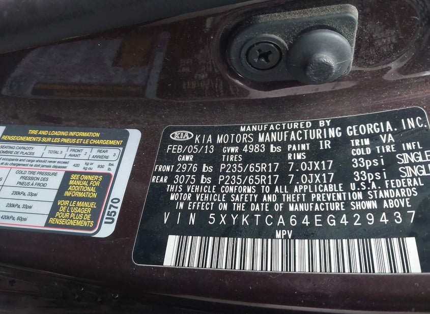 - Название лота: 2014 KIA SORENTO LX