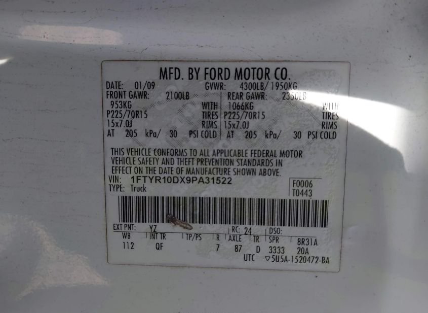 - VIN: 1FTYR10DX9PA31522
