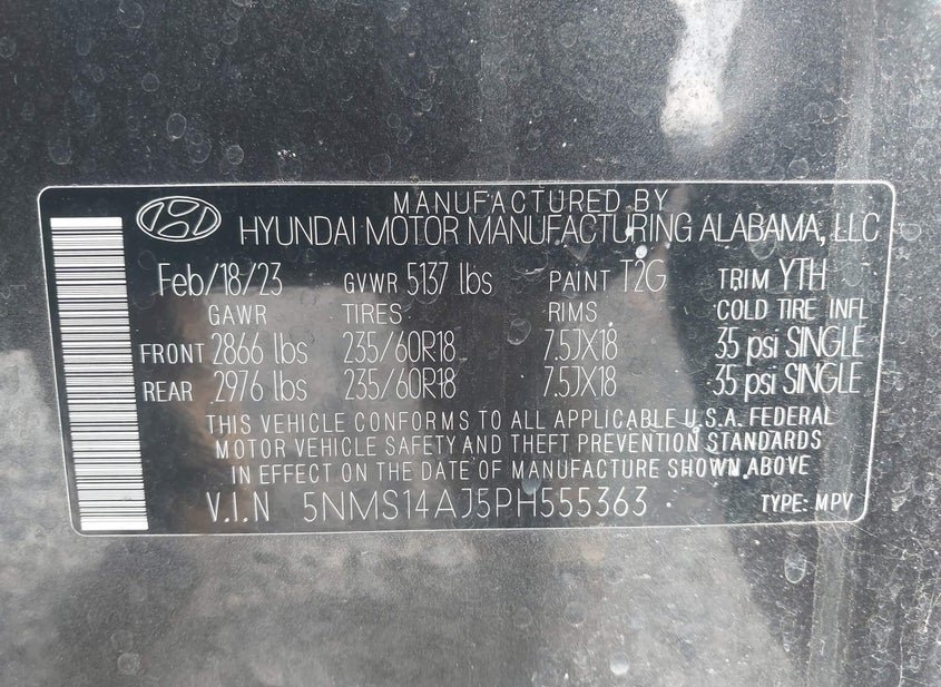 - VIN: 5NMS14AJ5PH555363