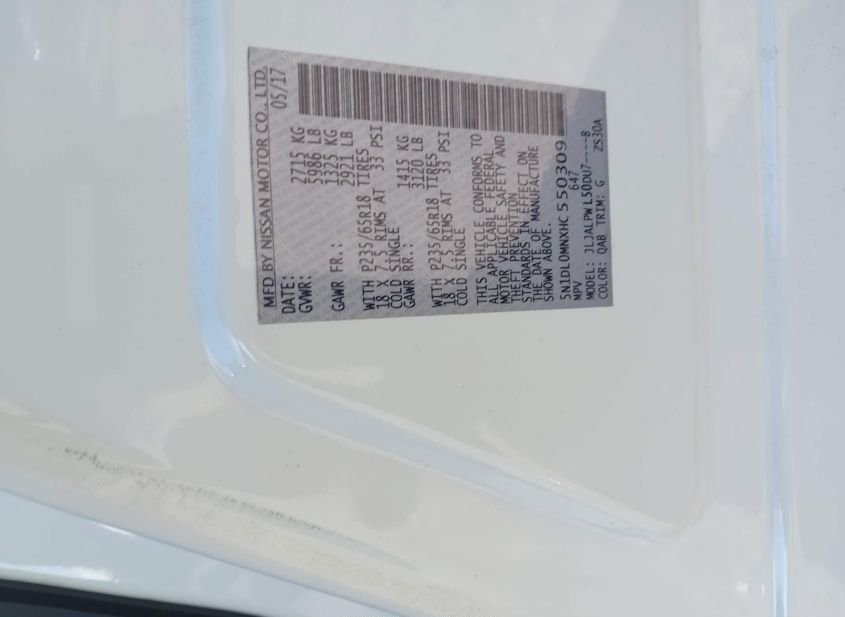 - VIN: 5N1DL0MNXHC550309