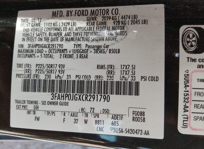 - VIN: 3FAHP0JGXCR291790