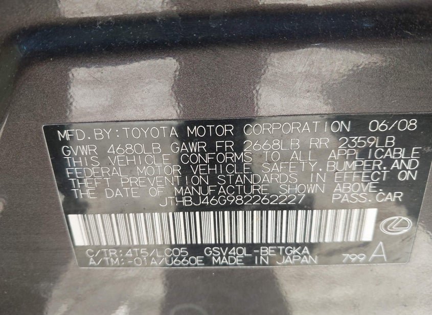 - VIN: JTHBJ46G982262227