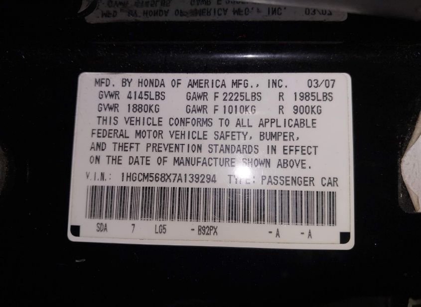 - VIN: 1HGCM568X7A139294