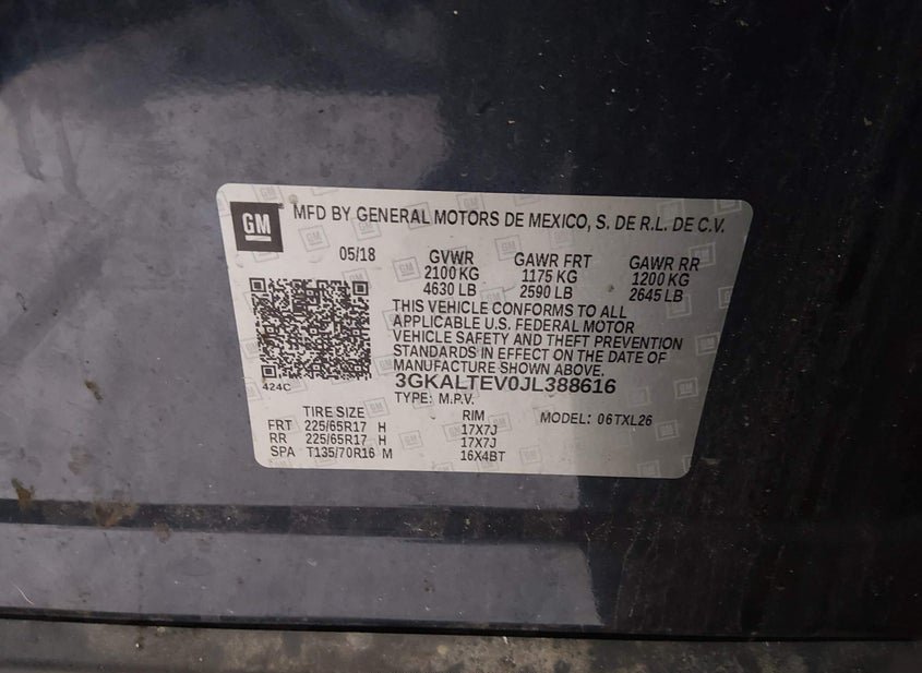 - VIN: 3GKALTEV0JL388616