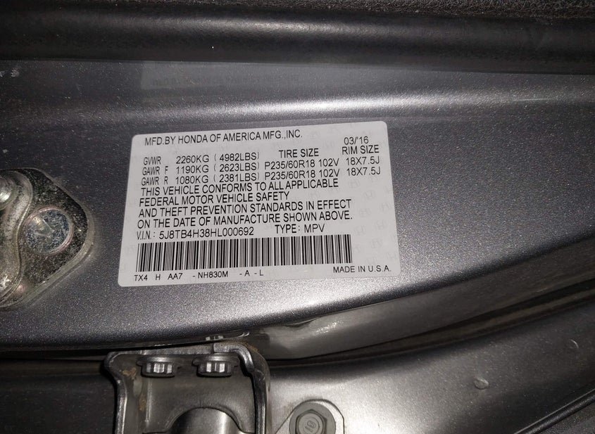 - VIN: 5J8TB4H38HL000692