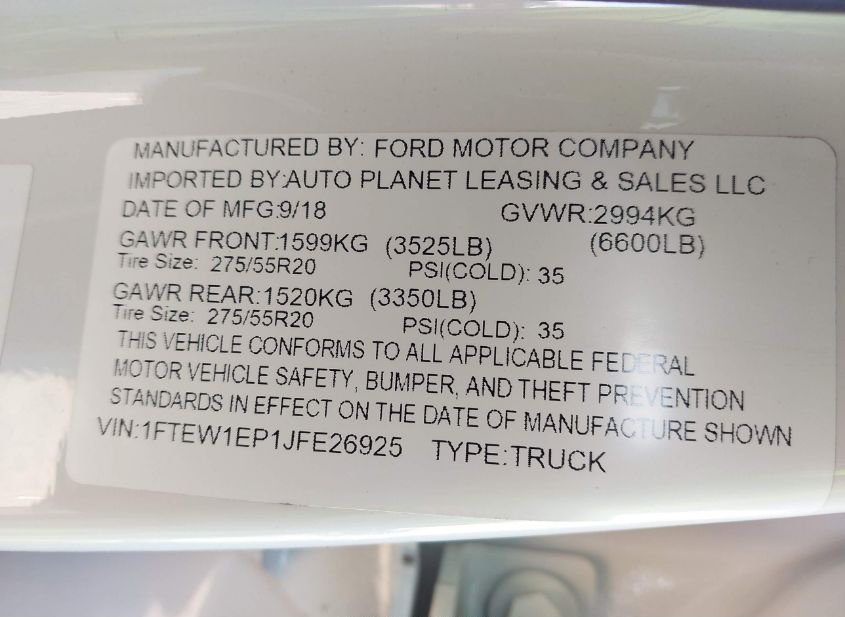 - VIN: 1FTEW1EP1JFE26925