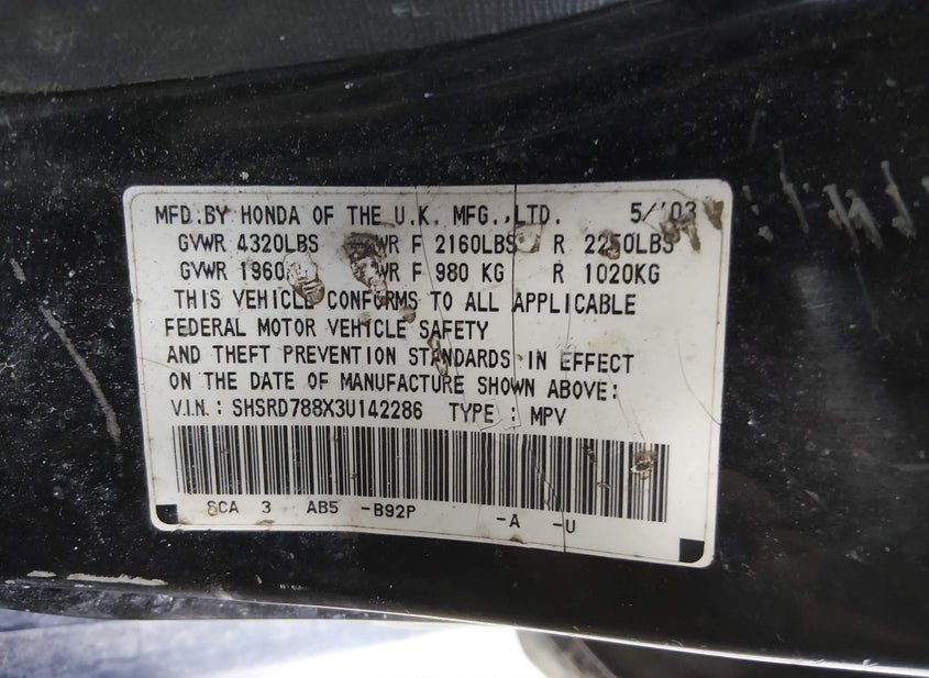 - VIN: SHSRD788X3U142286