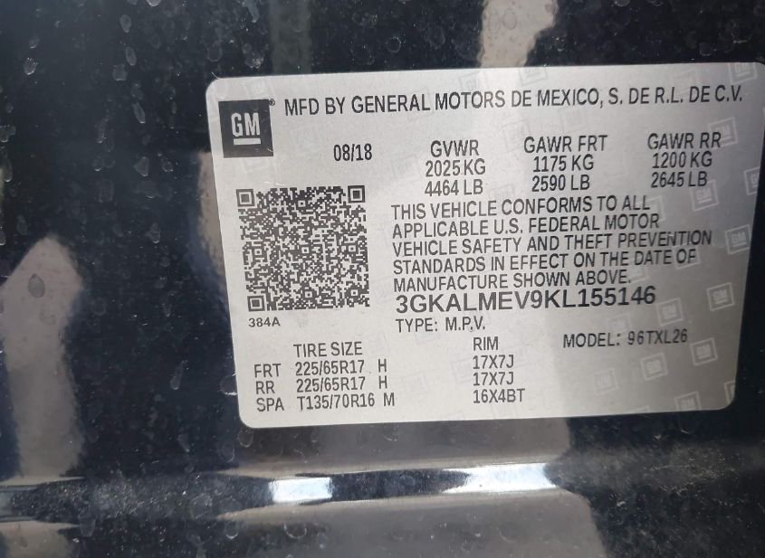 - VIN: 3GKALMEV9KL155146