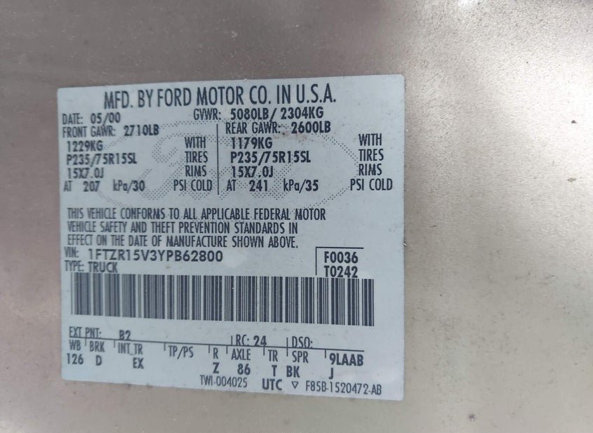 - VIN: 1FTZR15V3YPB62800