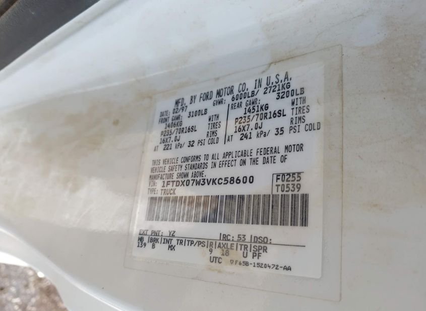 - VIN: 1FTDX07W3VKC58600
