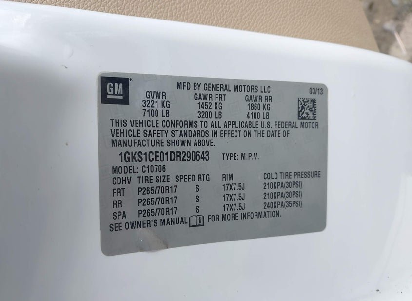- VIN: 1GKS1CE01DR290643