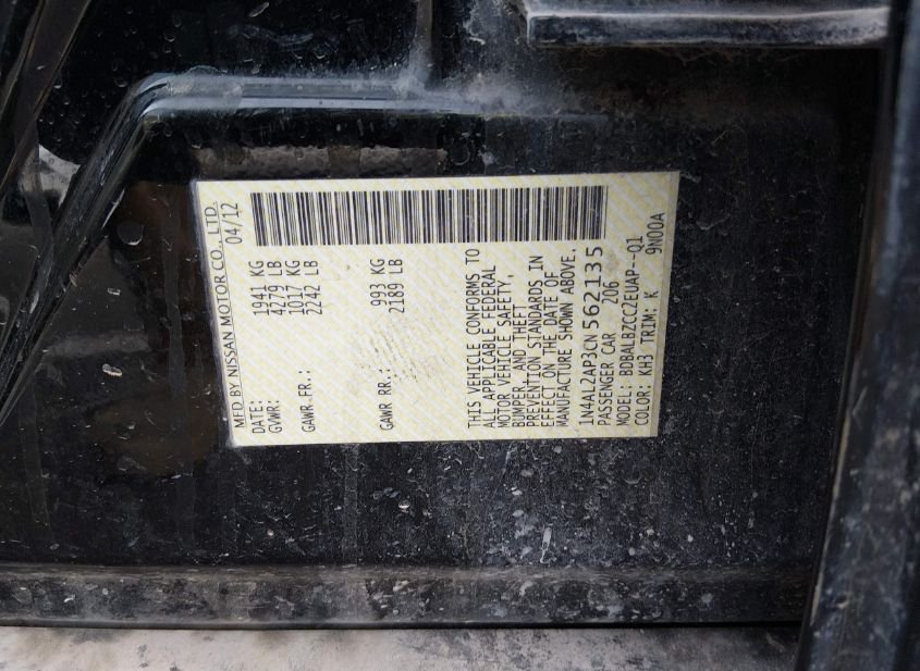 - Название лота: 2012 NISSAN ALTIMA 2.5 S
