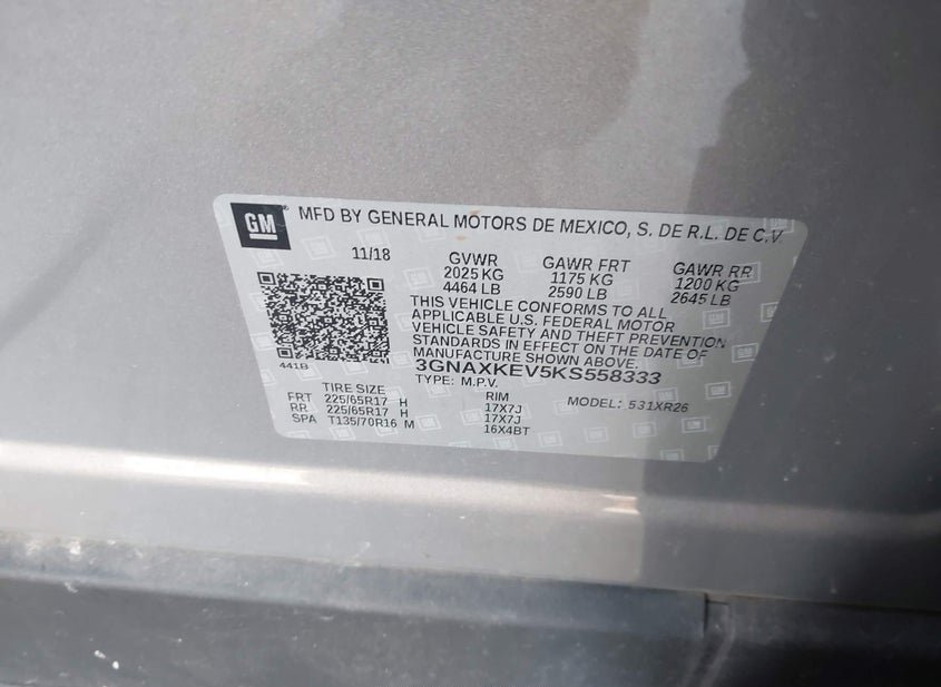 - VIN: 3GNAXKEV5KS558333