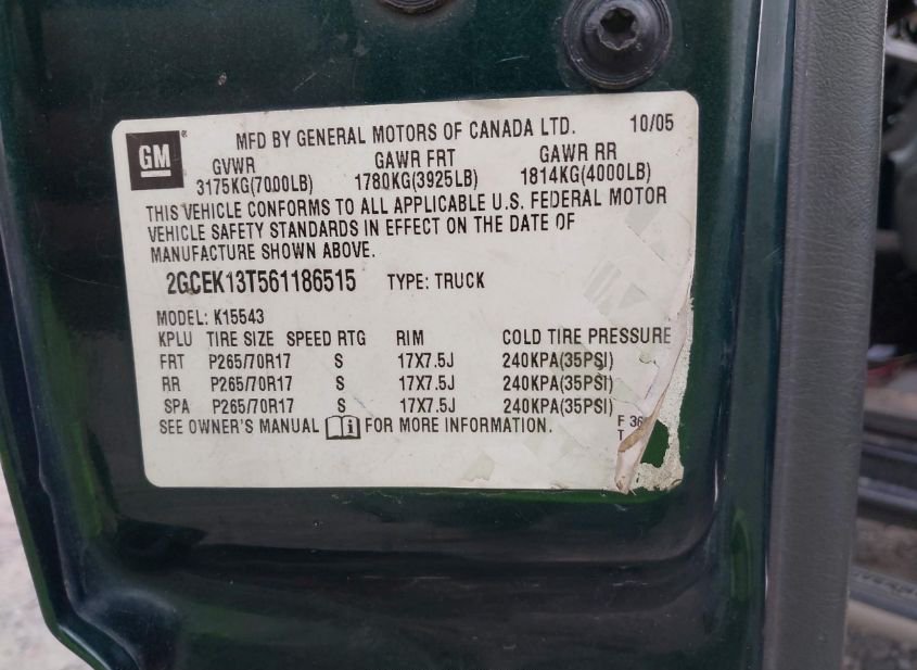 - VIN: 2GCEK13T561186515