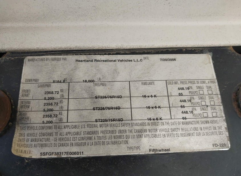 - VIN: 5SFGF38317E006011
