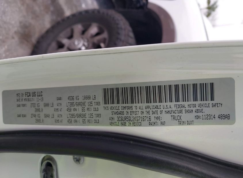 - VIN: 3C6UR5GL2KG716716