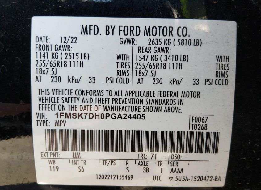 - VIN: 1FMSK7DH0PGA24405