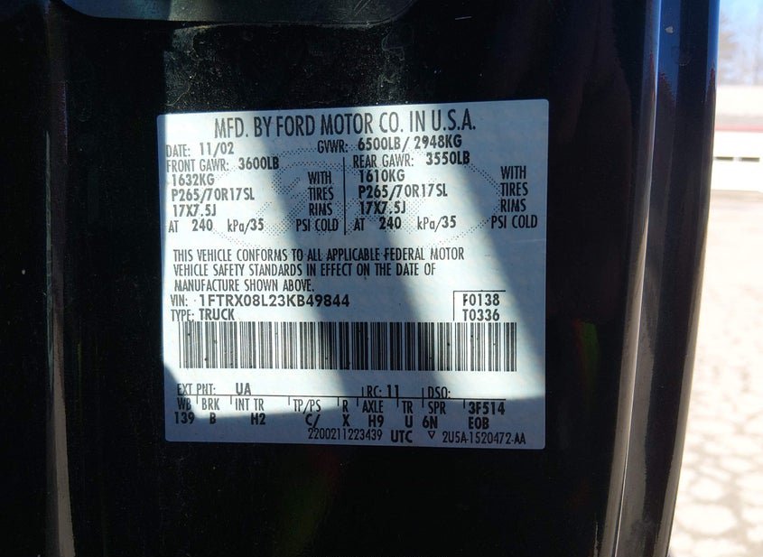 - Название лота: 2003 FORD F-150 LARIAT/XL/XLT