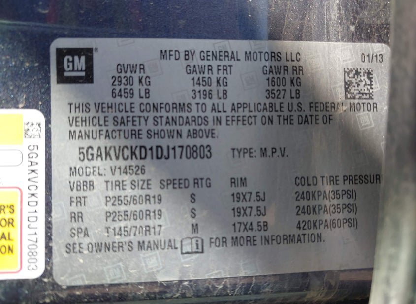 - VIN: 5GAKVCKD1DJ170803