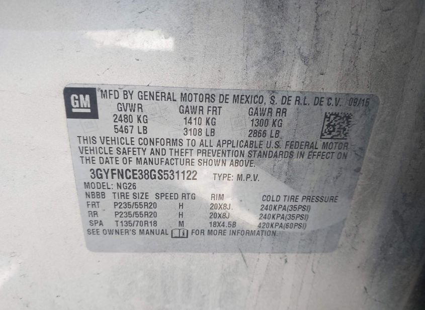 - VIN: 3GYFNCE38GS531122