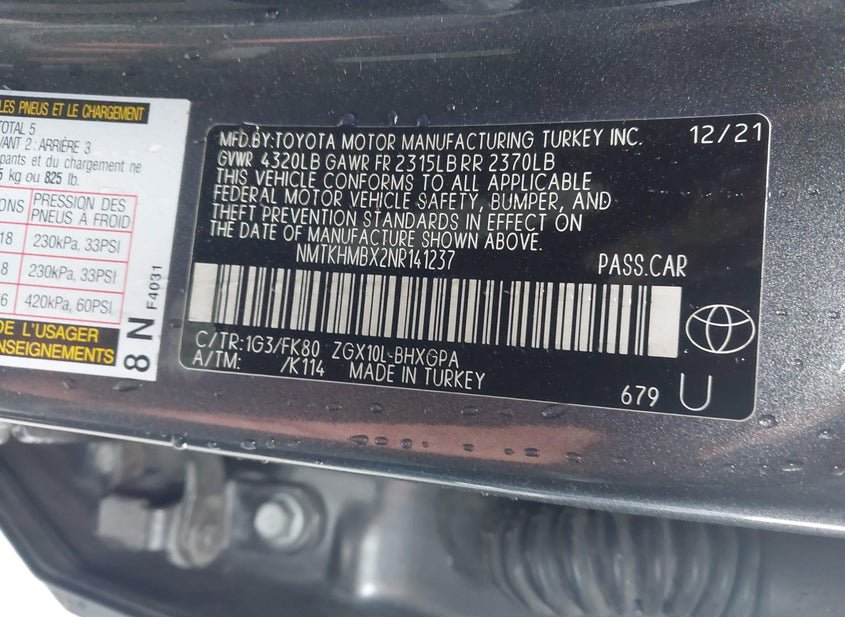 - VIN: NMTKHMBX2NR141237