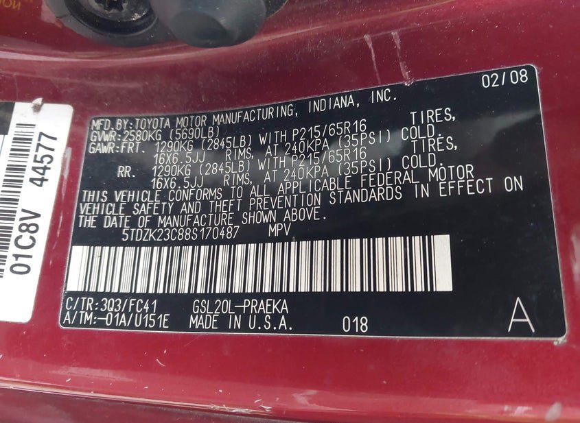 - VIN: 5TDZK23C88S170487