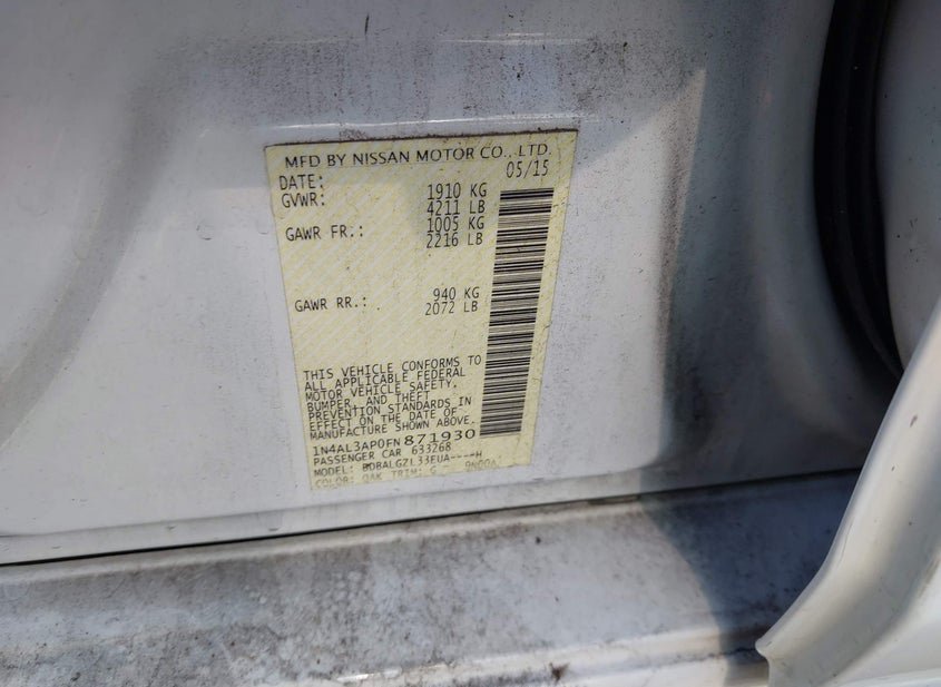 - VIN: 1N4AL3AP0FN871930