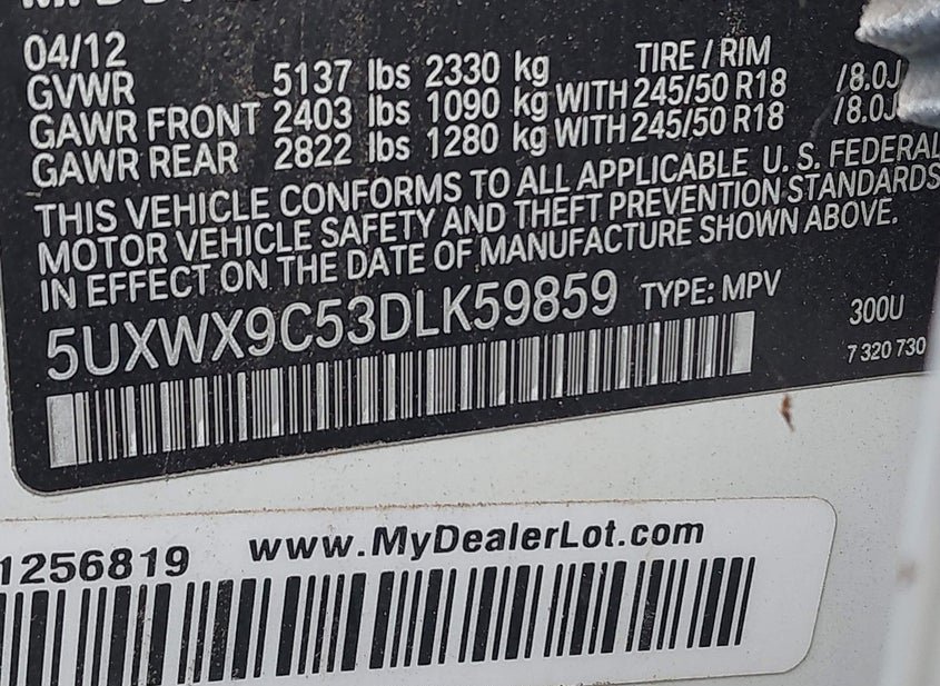 - VIN: 5UXWX9C53DLK59859