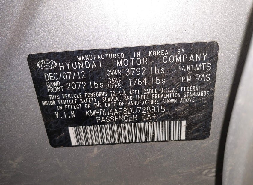 - VIN: KMHDH4AE8DU728915
