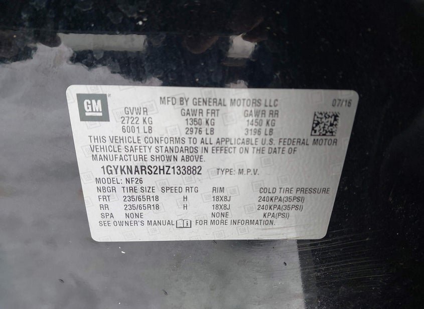 - VIN: 1GYKNARS2HZ133882