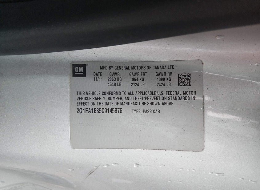 - VIN: 2G1FA1E35C9145876