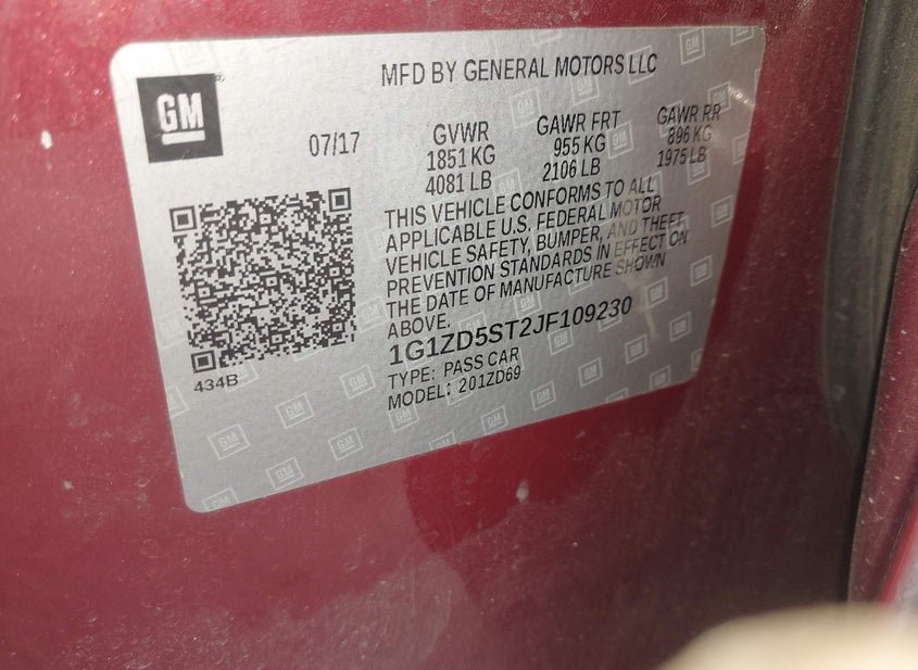 - VIN: 1G1ZD5ST2JF109230