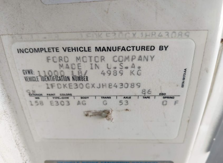 - VIN: 1FDKE30GXJHB43089