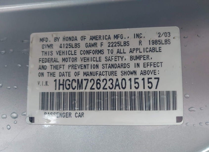 - VIN: 1HGCM72623A015157