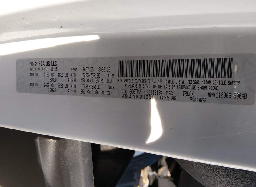- VIN: 3C6TRVDD8GE112194