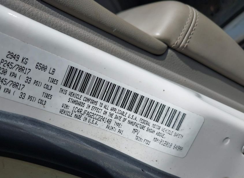 - VIN: 1C4RJFAG2CC224148