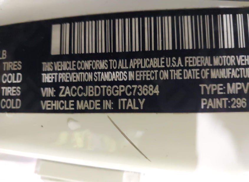 - VIN: ZACCJBDT6GPC73684