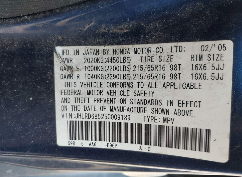 - VIN: JHLRD68525C009189