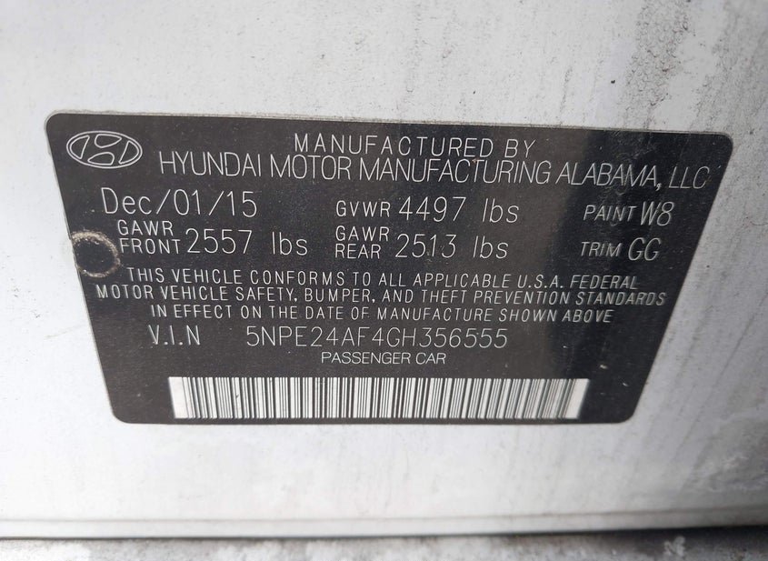 - VIN: 5NPE24AF4GH356555