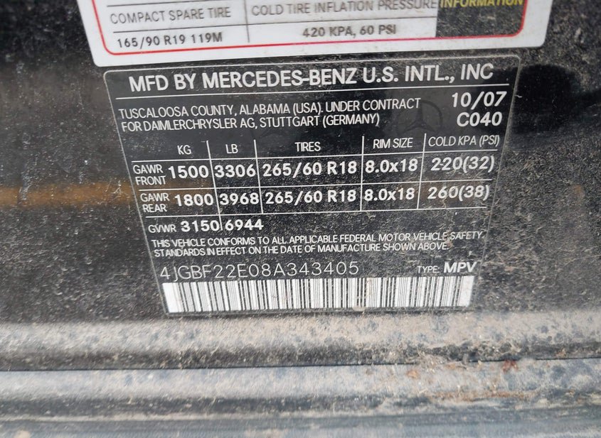 - VIN: 4JGBF22E08A343405