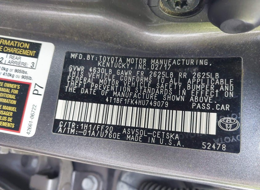 - VIN: 4T1BF1FK4HU749079