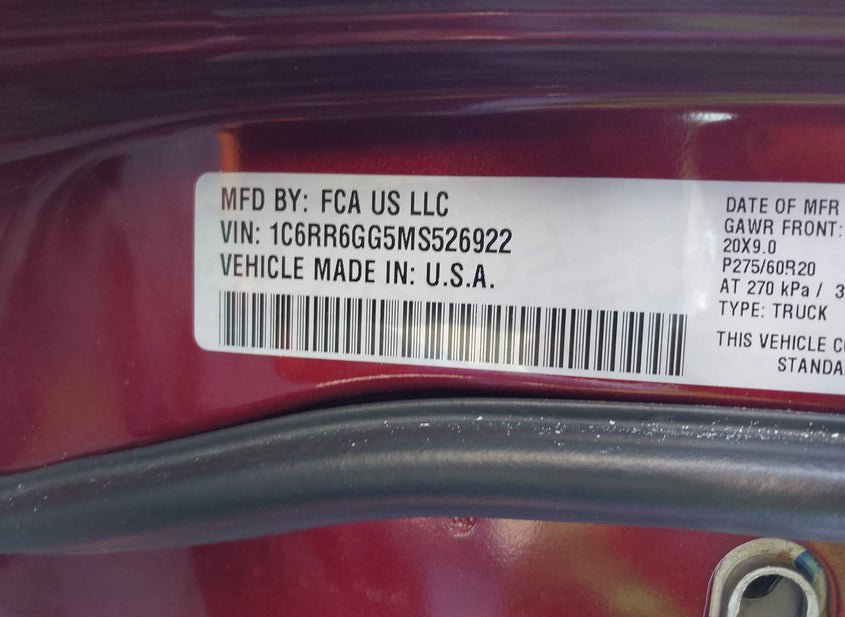 - VIN: 1C6RR6GG5MS526922