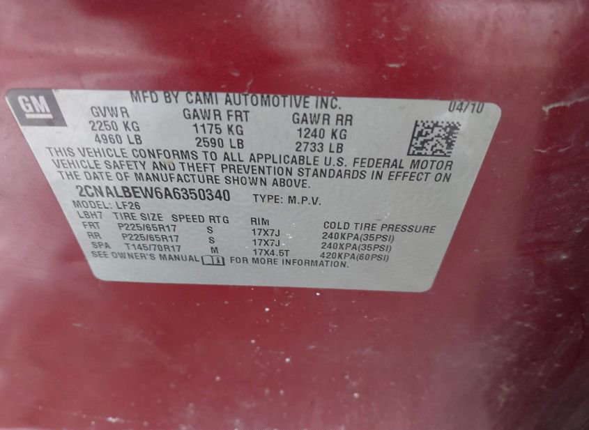 - VIN: 2CNALBEW6A6350340