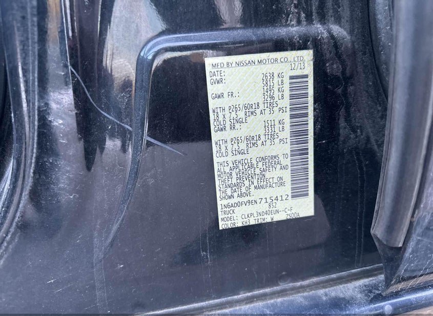 - VIN: 1N6AD0FV9EN715412